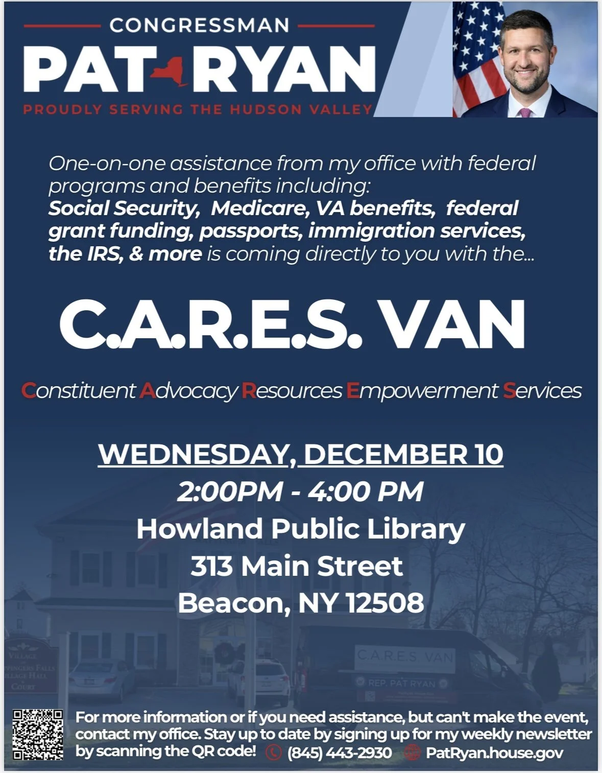 Congressman Pat Ryan’s C.A.R.E.S. Van Comes To Beacon’s Howland Public Library